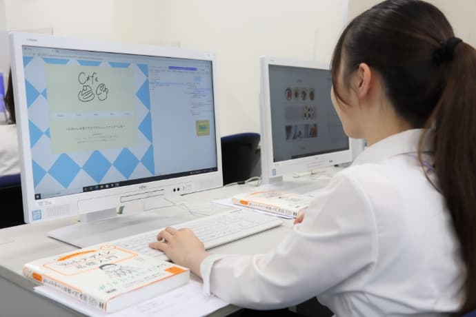 プログラマとパソコン活用のプロフェッショナル。それぞれのスキルをしっかりと身につけ、2年間で国家資格(基本情報技術者・ITパスポート)を取得し、ITエンジニア・IT技術者としての就職を目指します。