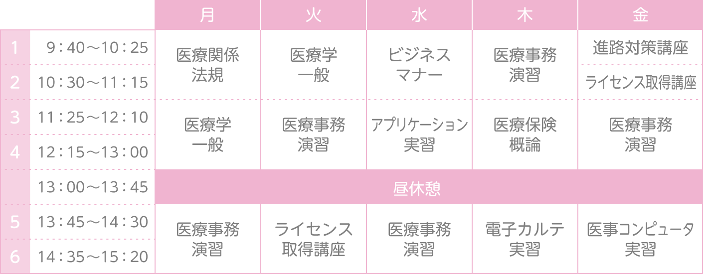 正社員として就職できる!1年間で即戦力となり正社員として就職できるよう、授業では実践を重視しています。病院やクリニックで導入されている医事コンピュータや、導入が進む電子カルテの操作・入力方法を身につけ、スキルの証として資格も取得します。
